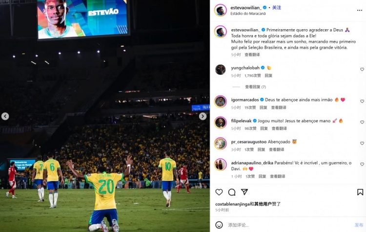 埃斯特旺也在赛后通过社媒晒出自己的庆祝照,并配文:“首先,我要感谢上帝🙏🏽愿一切荣耀归于他!”